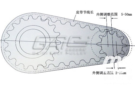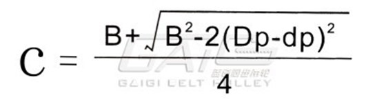 Dp=p×Z/∏ Dp: 節徑 Z : 齒數 ∏: 圓周率 同步帶輪實際外圓直徑計算: De= Dp-2δ Dp:節徑 δ:節頂距同步帶輪中心距及同步帶節線長計算