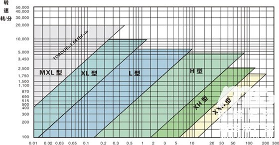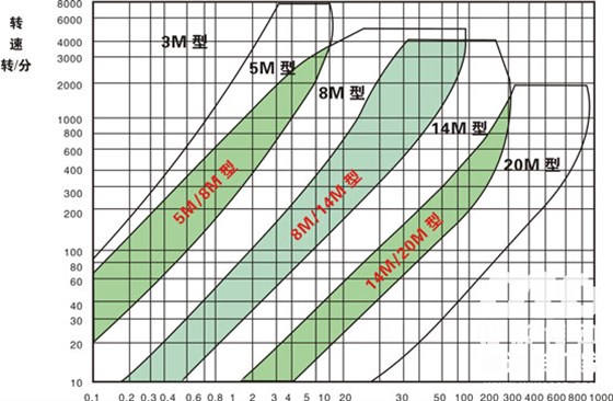 HTD型(圓弧形齒)同步帶、輪選型圖