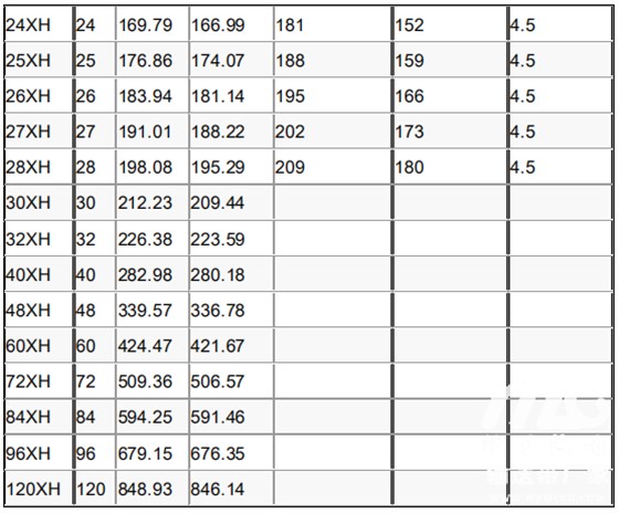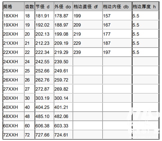 XXH 型同步帶輪尺寸表 單位:(mm)