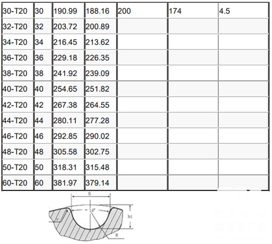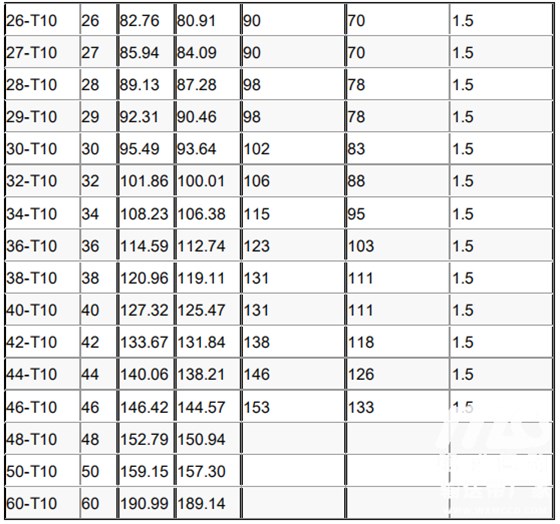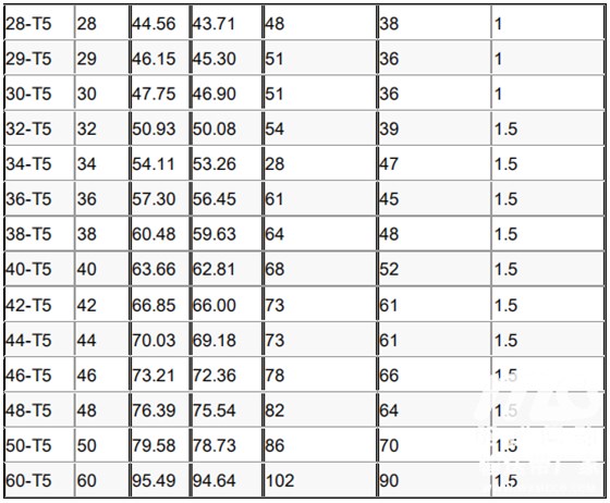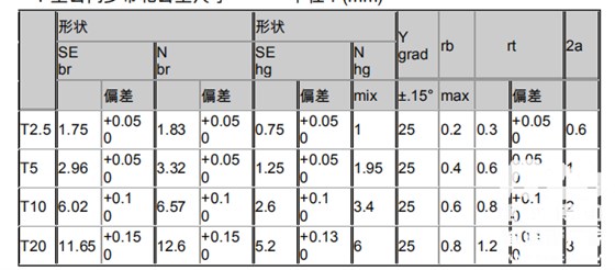 T 型齒同步帶輪齒型尺寸 單位:(mm)