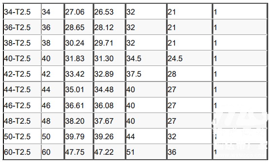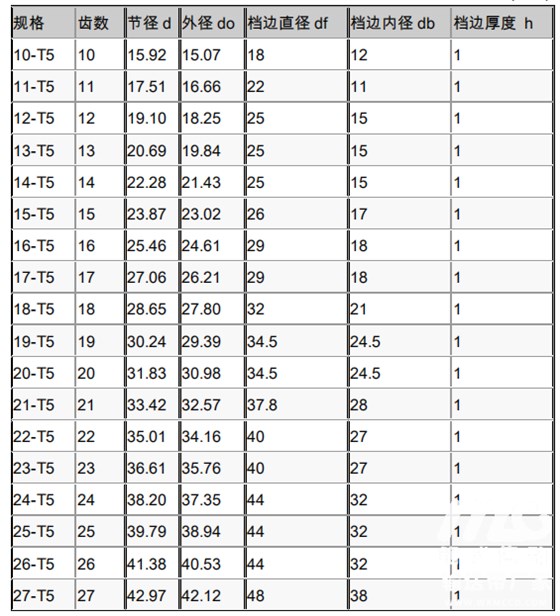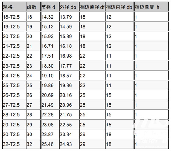 T2.5 型同步帶輪尺寸表 單位:(mm)
