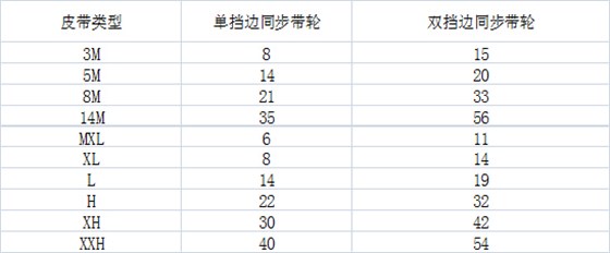 只有一個同步帶輪有擋邊或者是二個同步帶輪都有擋邊的情況下,根據同步帶選型號選定中心距預留調整量。